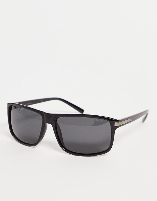 Polaroid - Firkantede retrosolbriller i skinnende sort