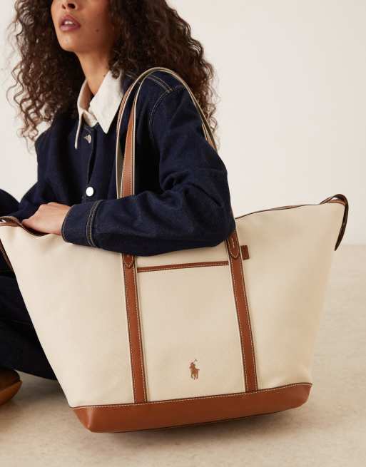 Polo Ralph Lauren - Beige og brun stor shopper-totetaske i kanvas