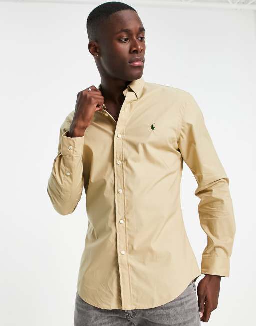 Polo Ralph Lauren - Beige slim fit-skjorte i poplin med knapper og ikonlogo