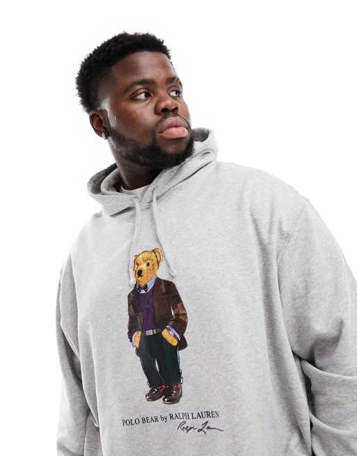 Polo Ralph Lauren Big & Tall - Gråmeleret fleece-hættetrøje med klassisk bjørneprint