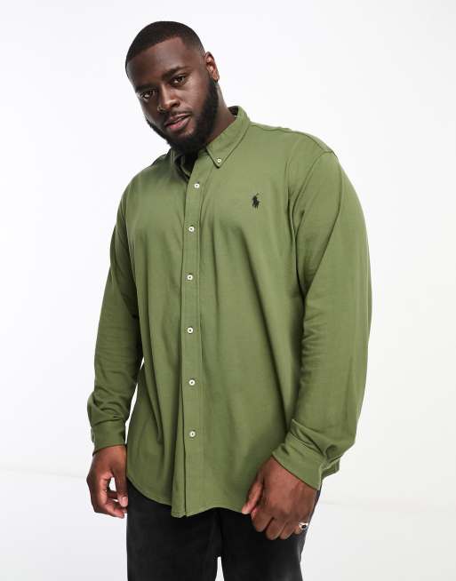Polo Ralph Lauren Big & Tall - Mørkegrøn skjorte med knapper og logoikon i piqué