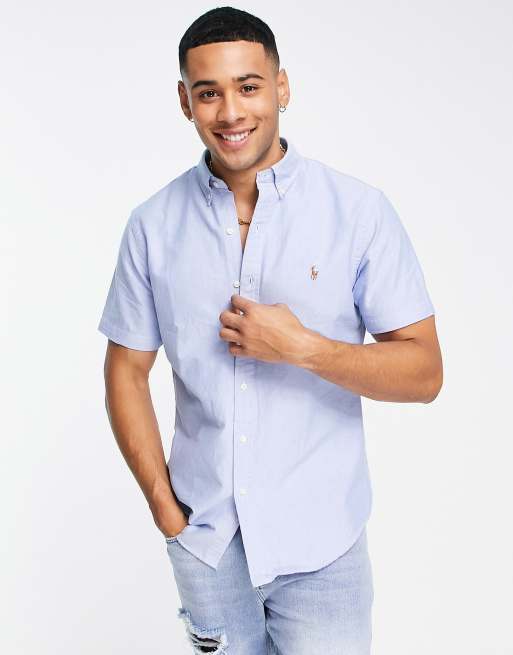 Polo Ralph Lauren - Blå Oxford-skjorte med korte ærmer og logoikon i Slim Fit