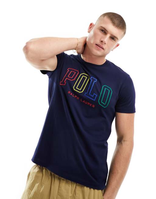 Polo Ralph Lauren - College-T-shirt med multifarvet logo i marineblå