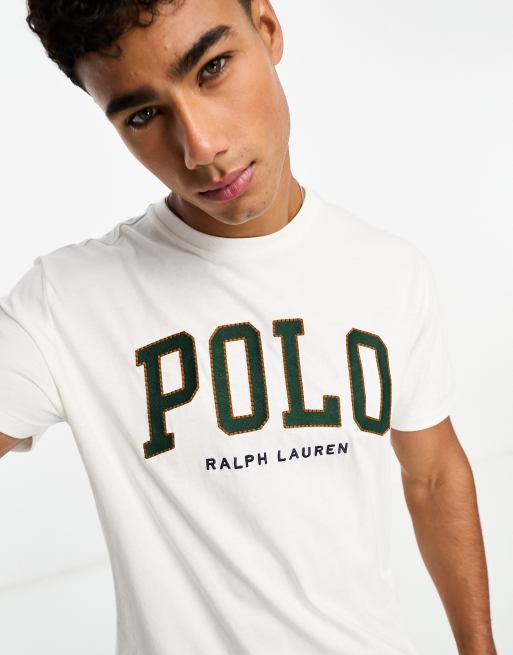 Polo Ralph Lauren - Cremehvid T-shirt med collegelogo i klassisk oversized pasform