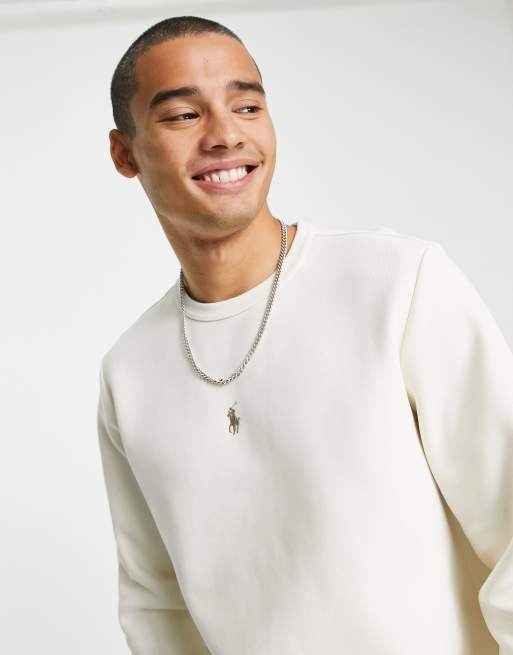 Polo Ralph Lauren - Dobbeltstrikket cremehvid sweatshirt med centralt ikonlogo
