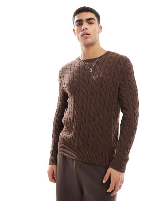 Polo Ralph Lauren - Driver - Brun meleret kabelstrikket trøje i bomuld med ikonlogo