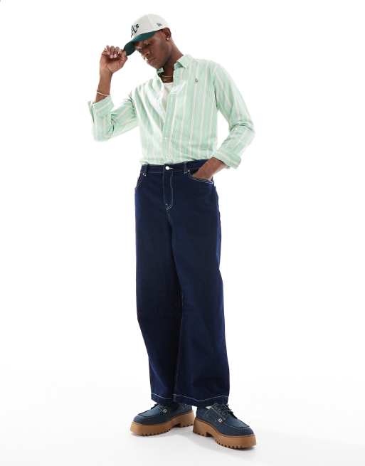 Polo Ralph Lauren - Grøn/hvid Oxford-skjorte med logoikon og multifarvede striber i figursyet pasform