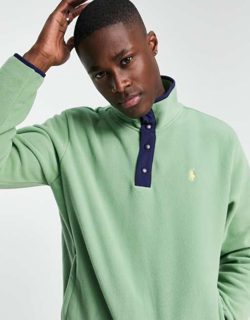 Polo Ralph Lauren - Grøn sweatshirt med halv lynlås og ikonlogo i polar-fleece