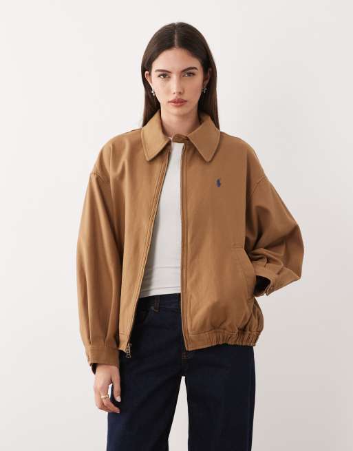 Polo Ralph Lauren - Gyldenbrun Harrington-bomber-jakke med ikonlogo i bomuldstwill