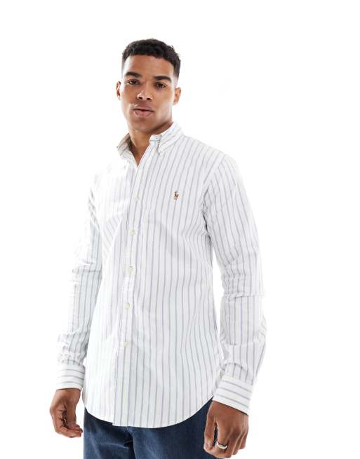 Polo Ralph Lauren - Hvid figursyet Oxford-skjorte med ikonlogo og blå striber