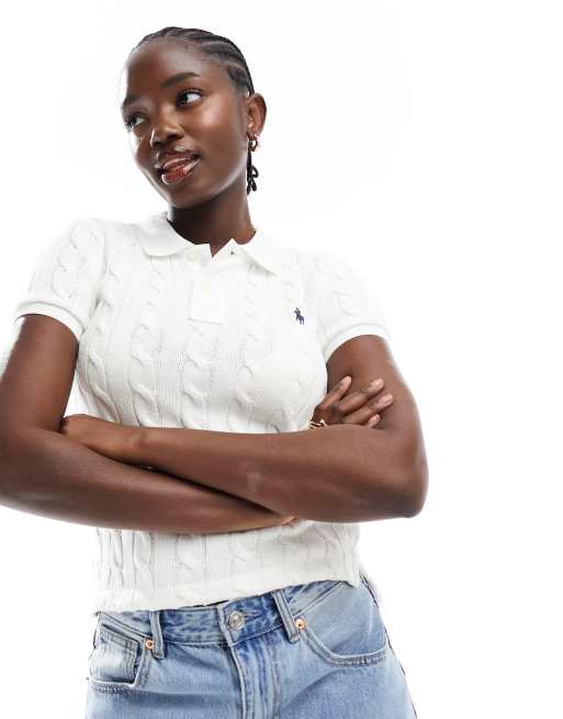 Polo Ralph Lauren - Hvid og strikket polotrøje med logo