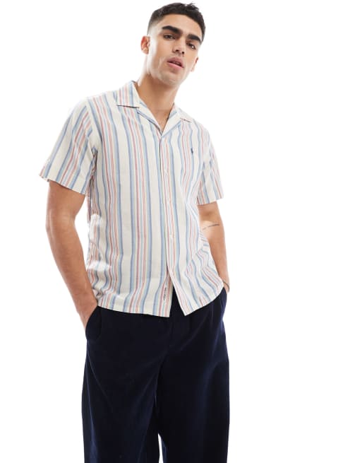 Polo Ralph Lauren - Hvid-/pink-stribet skjorte med korte ærmer og logoikon i klassisk og oversized pasform i chambray