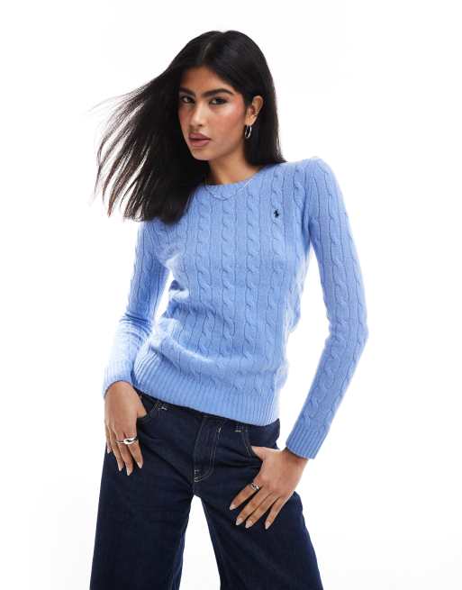 Polo Ralph Lauren - Julianna - Lyseblå kabelstrikket trøje i uld