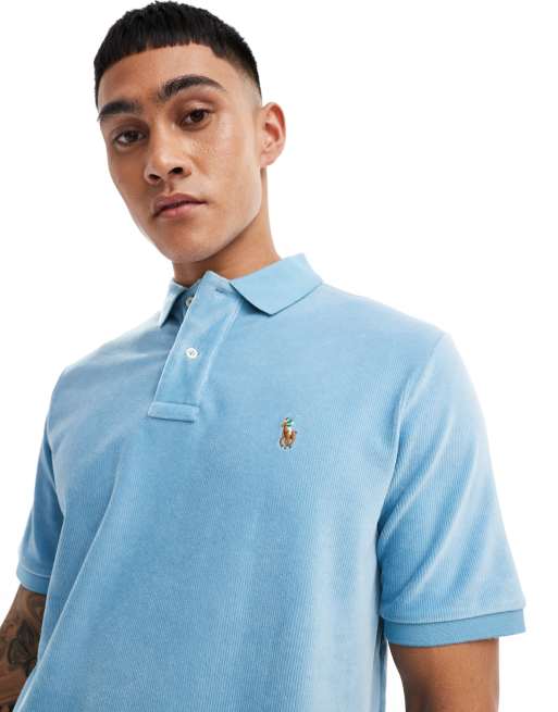 Polo Ralph Lauren - Lyseblå slim fit-polo i strikket fløjl med ikonlogo