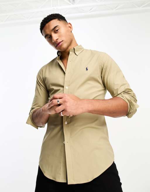 Polo Ralph Lauren - Lysebrun Slim Fit poplin-skjorte med logoikon og stretch i bomuld