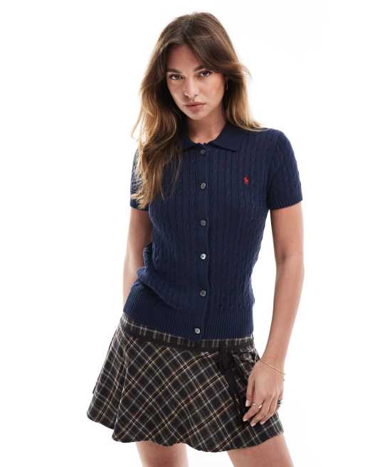 Polo Ralph Lauren - Marineblå cardigan med krave og korte ærmer