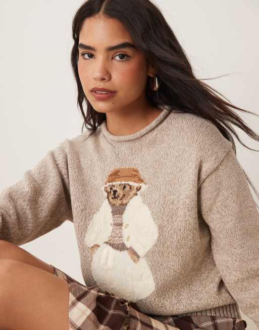 Polo Ralph Lauren - Meleret cremehvid trøje med bamselogo i strikket bomuld