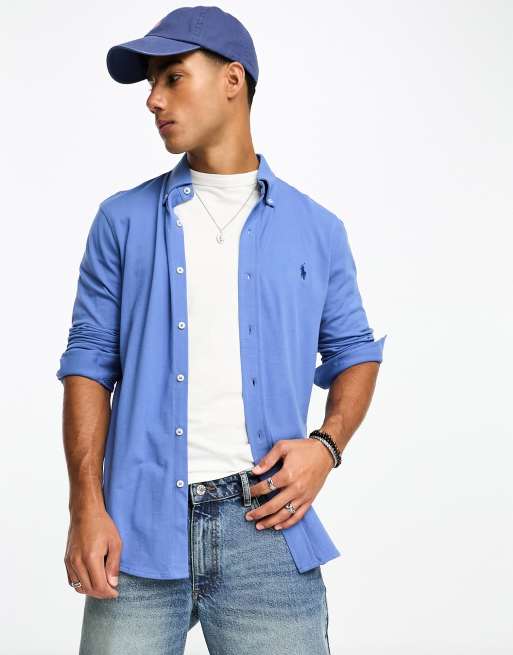 Polo Ralph Lauren - Mellemblå skjorte med logoikon i piqué