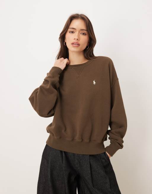 Polo Ralph Lauren - Mørkebrun sweatshirt med logoikon i arktisk fleece