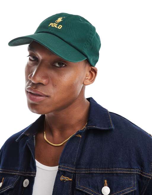 Polo Ralph Lauren - Mørkegrøn baseballcap med guldfarvet logo i twill