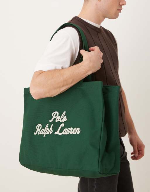 Polo Ralph Lauren - Mørkegrøn stor tote-taske med skriftlogo i kanvas