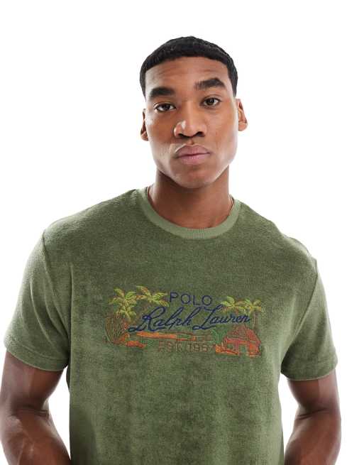 Polo Ralph Lauren - Olivengrøn oversized T-shirt med broderet landskabslogo i bomuld