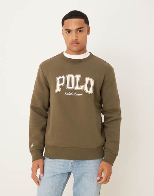 Polo Ralph Lauren - Olivengrøn sweatshirt med stort printet college-logo i fleece
