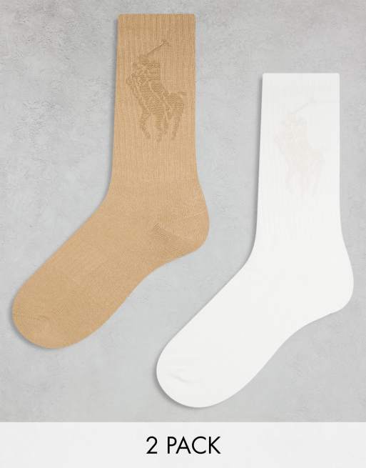 Polo Ralph Lauren - Pakke med 2 par cremehvide og gyldenbrune sokker med stort ponylogo