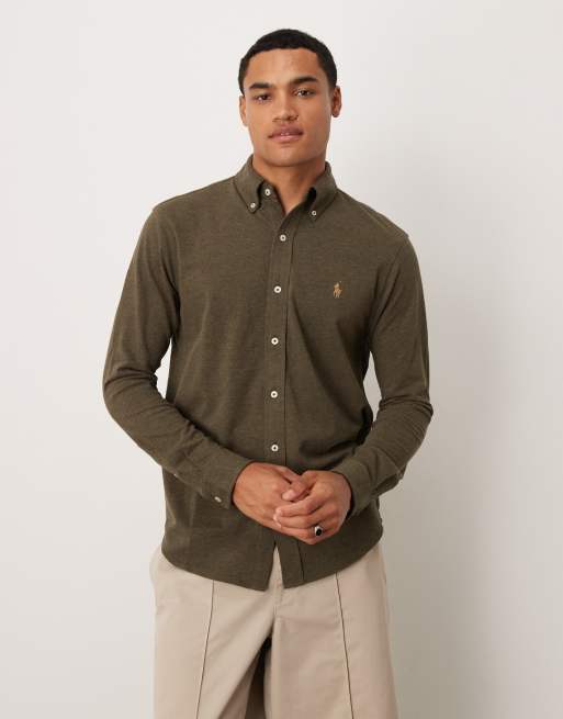 Polo Ralph Lauren - Skjorte i pique med olivengrøn melering og ikonlogo