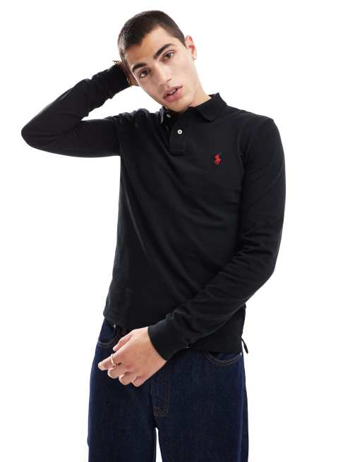 Polo Ralph Lauren - Sort langærmet slim fit-polo i piqué med ikonlogo