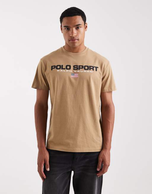 Polo Ralph Lauren - Sport - Beige T-shirt med klassisk pasform og flaglogo på brystet