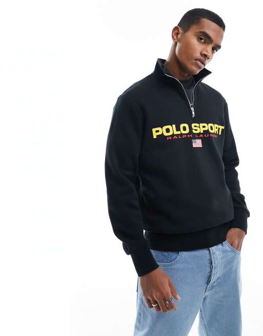 Polo Ralph Lauren - Sport Capsule - Sort sweatshirt med logo fortil og lynlås i halsen