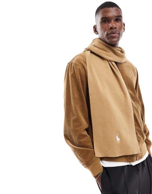 Polo Ralph Lauren - Strikket og gyldenbrunt halstørklæde i bomuld med ikonlogo