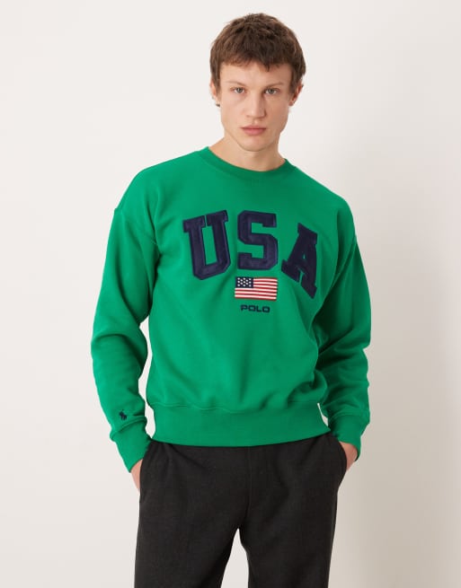 Polo Ralph Lauren - Team USA - Unisex - Grøn sweatshirt med rund hals og logo på brystet