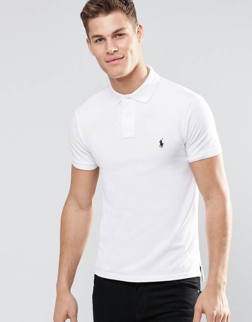 Tætsiddende hvid polo med logo fra Polo Ralph Lauren