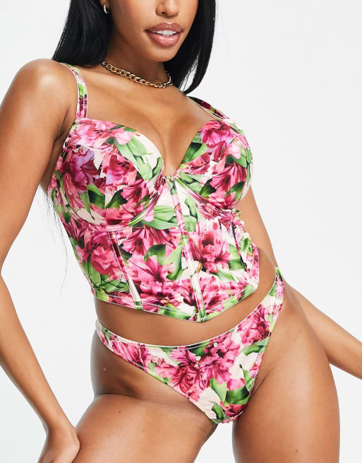 Pour Moi - Couture - Lingerisæt i satin med blomstermønster