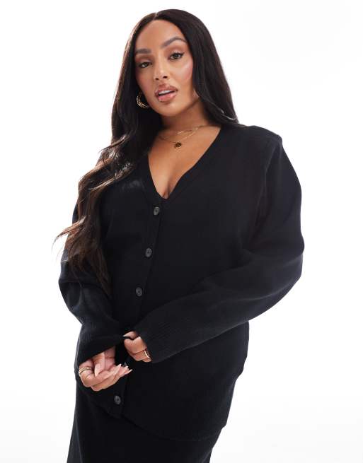 Pretty Lavish Curve - Sort ribstrikket cardigan med knapper - Del af sæt