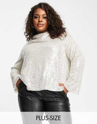 Pretty Lavish Curve - Udsmykket draperet bluse i sølvfarve