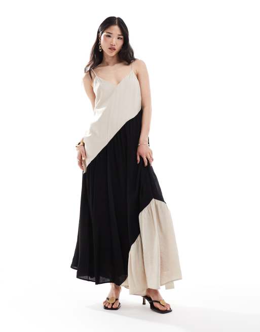Pretty Lavish - Beige midaxi-kjole med asymmetriske farveblokke