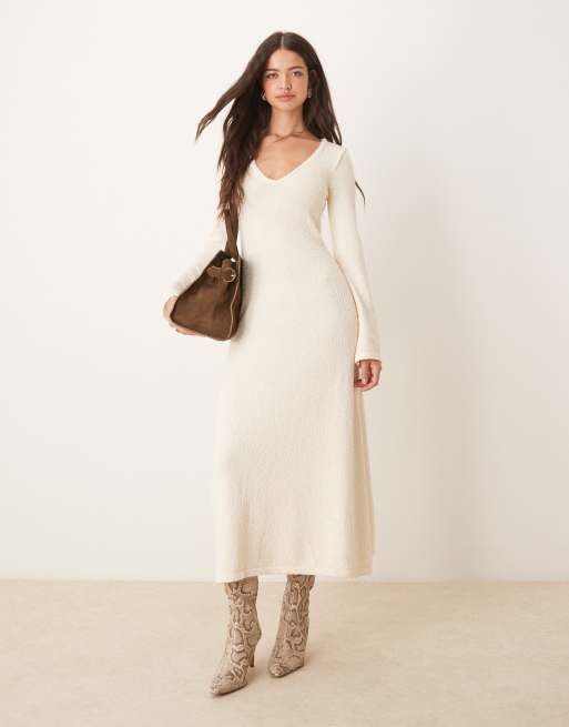 Pretty Lavish - Cremefarvet midaxikjole i boucléstrik