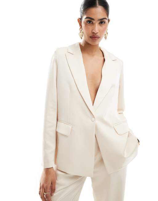 Pretty Lavish - Hen - Lang hvid habitblazer i satin - Del af sæt