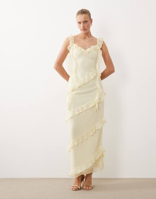 Pretty Lavish - Rue - Gul maxikjole med flæser og draperinger