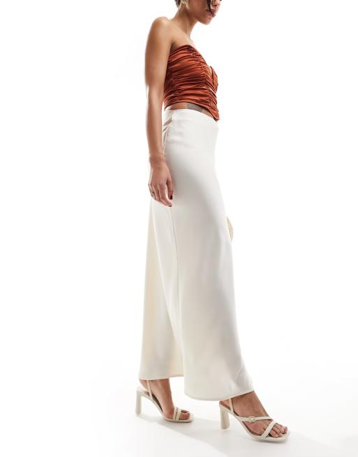 Pretty Lavish - Østersfarvet maxinederdel i satin
