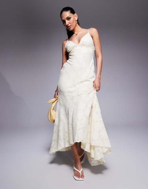 Princess Polly - Citrongul maxikjole med tekstureret blomstermønster og krydsende stropper på ryggen