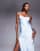 Princess Polly - Lyseblå maxikjole i satin med åben ryg og slids langs låret samt camistropper