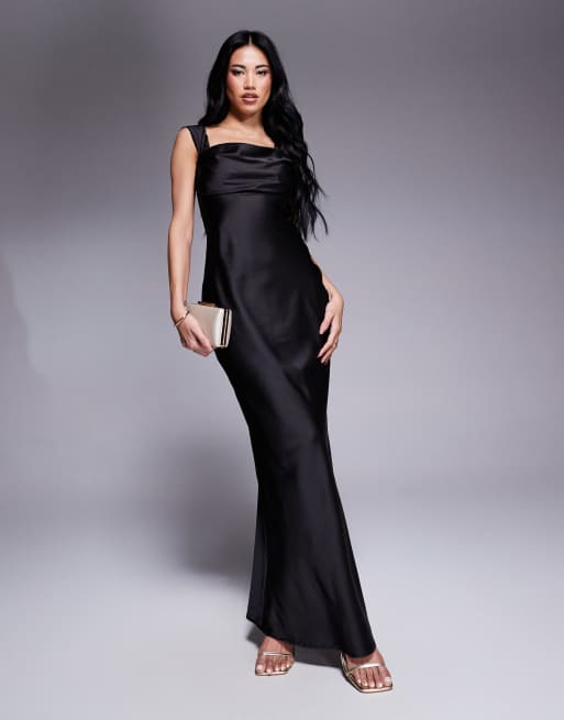 Princess Polly - Sort bardot-maxikjole med struktur i satin