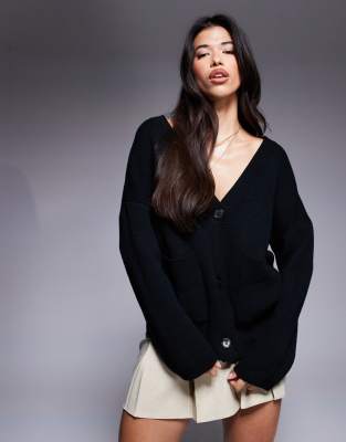 Princess Polly - Sort cardigan med sænkede skuldre og V-hals og lommedetalje