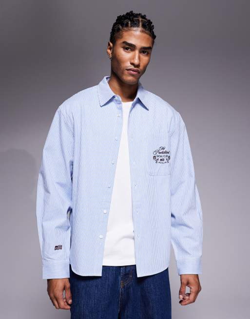Prohibited - Langærmet skjorte med lomme med logo og blå striber