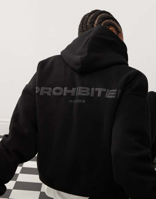 Prohibited - Sort hættetrøje med tonet logoprint på ryggen i stof på 360 gsm - Del af sæt