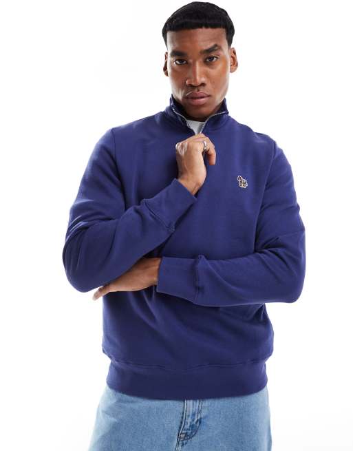 PS Paul Smith - Blå sweatshirt med halv lynlås og ikonisk zebralogo